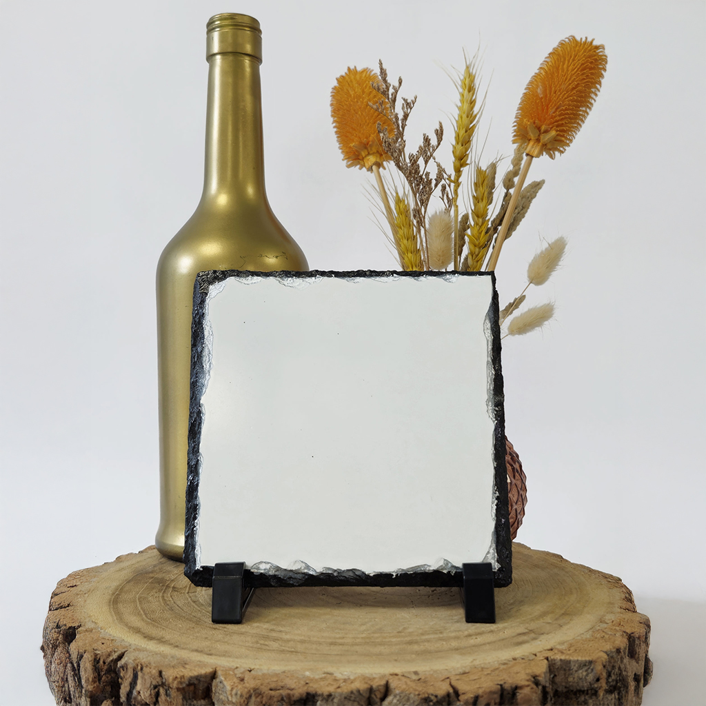 Chaque ardoise est taillée dans la pierre naturelle, avec des bords irréguliers qui lui confèrent un charme artisanal unique. Grâce à la sublimation haute définition, vos images sont imprimées directement sur la surface, garantissant un rendu éclatant, net et durable dans le temps.