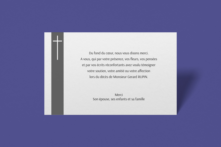 La carte de remerciement décès est un moyen délicat et personnel de témoigner votre reconnaissance tout en honorant la mémoire de votre proche disparu.