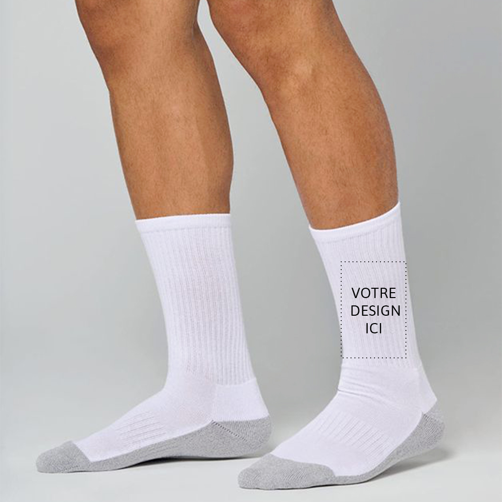 Le logo peut être imprimé sur chaque chaussette, sur le côté visible de la cheville, pour renforcer l’identité de votre équipe ou créer un accessoire unique. Elles sont disponibles en plusieurs couleurs et tailles adaptées aux enfants et adultes, permettant de créer une tenue personnalisée parfaitement assortie à votre club ou association.