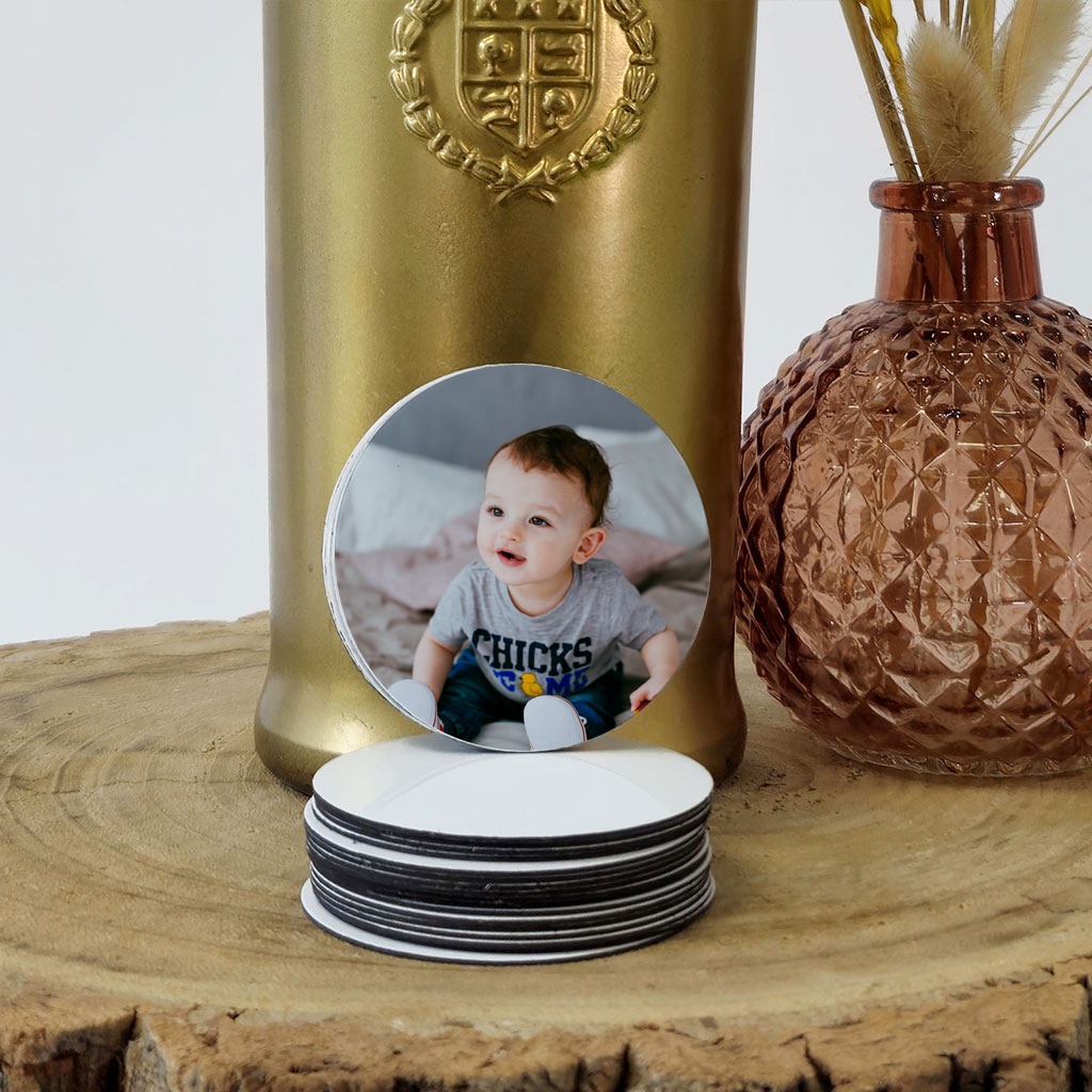Magnet rond photo personnalisé 5,5 cm. Idéal pour le frigo ou le bureau, imprimez vos plus beaux souvenirs sur un magnet rond original et durable.
