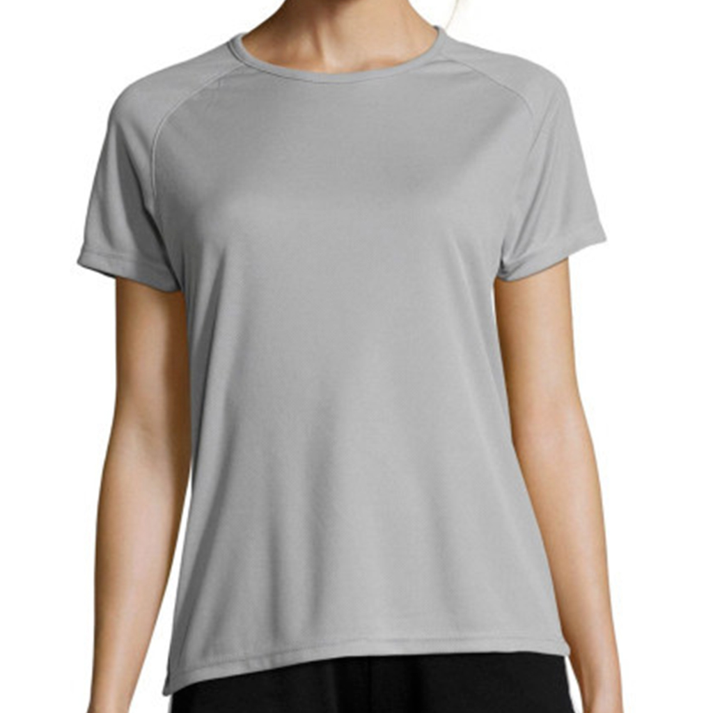T-shirt de sport femme personnalisable en polyester respirant mesh 140 g/m².  Idéal pour impression de logo, clubs et événements sportifs.