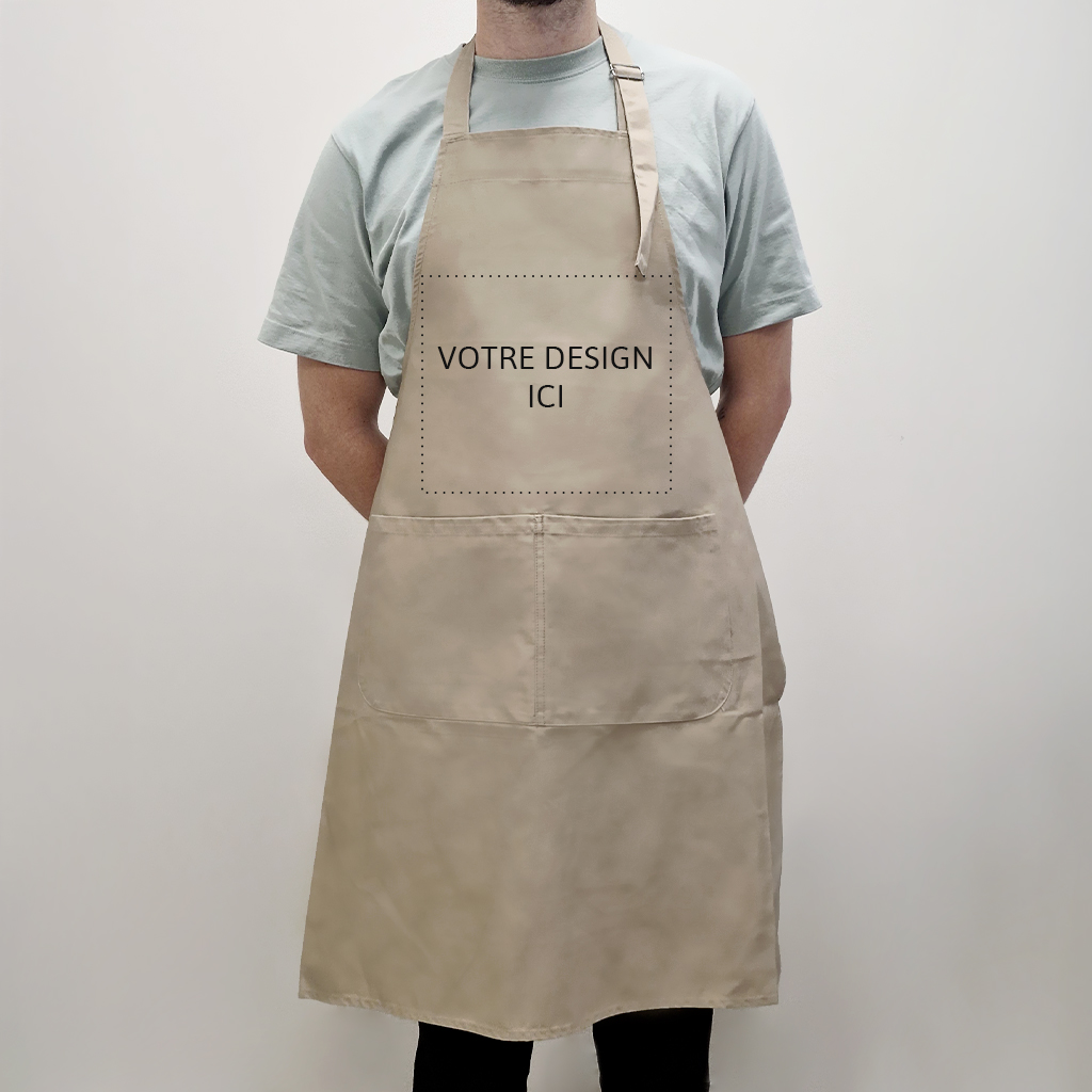 - Tablier de cuisine personnalisable avec grande zone d’impression